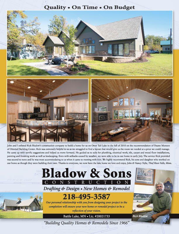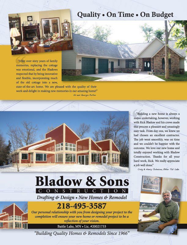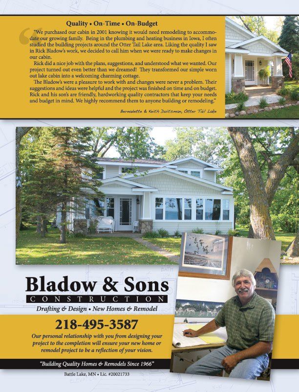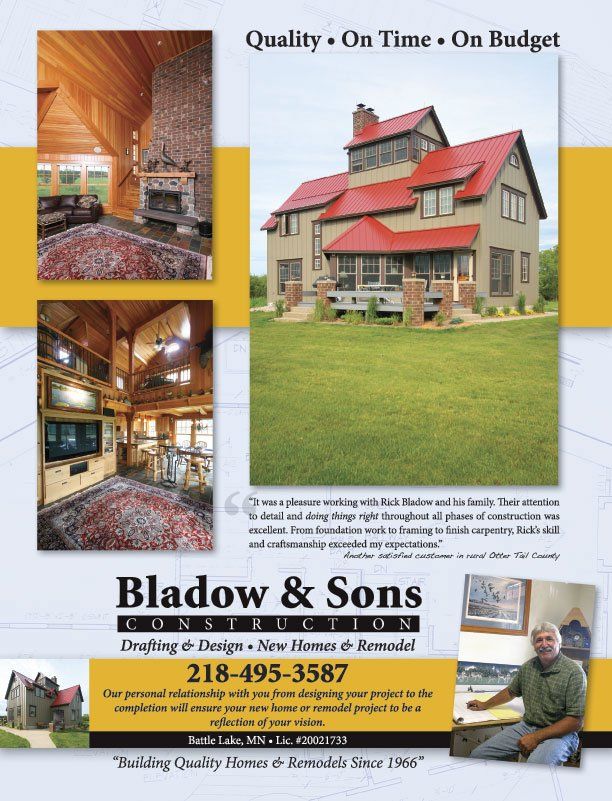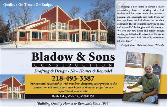 Bladow Construction formerly known and Bladow & Sons Construction has been around since 1966. Even though the name has changed, Rick Bladow, owner of Bladow Construction has provided quality construction services to numerous satisfied customers spanning over 50 years. During this time construction methods have changed, products have changed, but what remains unchanged is Rick's commitment to quality and his customers. Rick's dedication to the construction industry is a testimonial of his years of experience and numerous satisfied customers throughout the years. Below is a small sampling of what customers have to say about Bladow Construction. Double click on the images below to enlarge them.